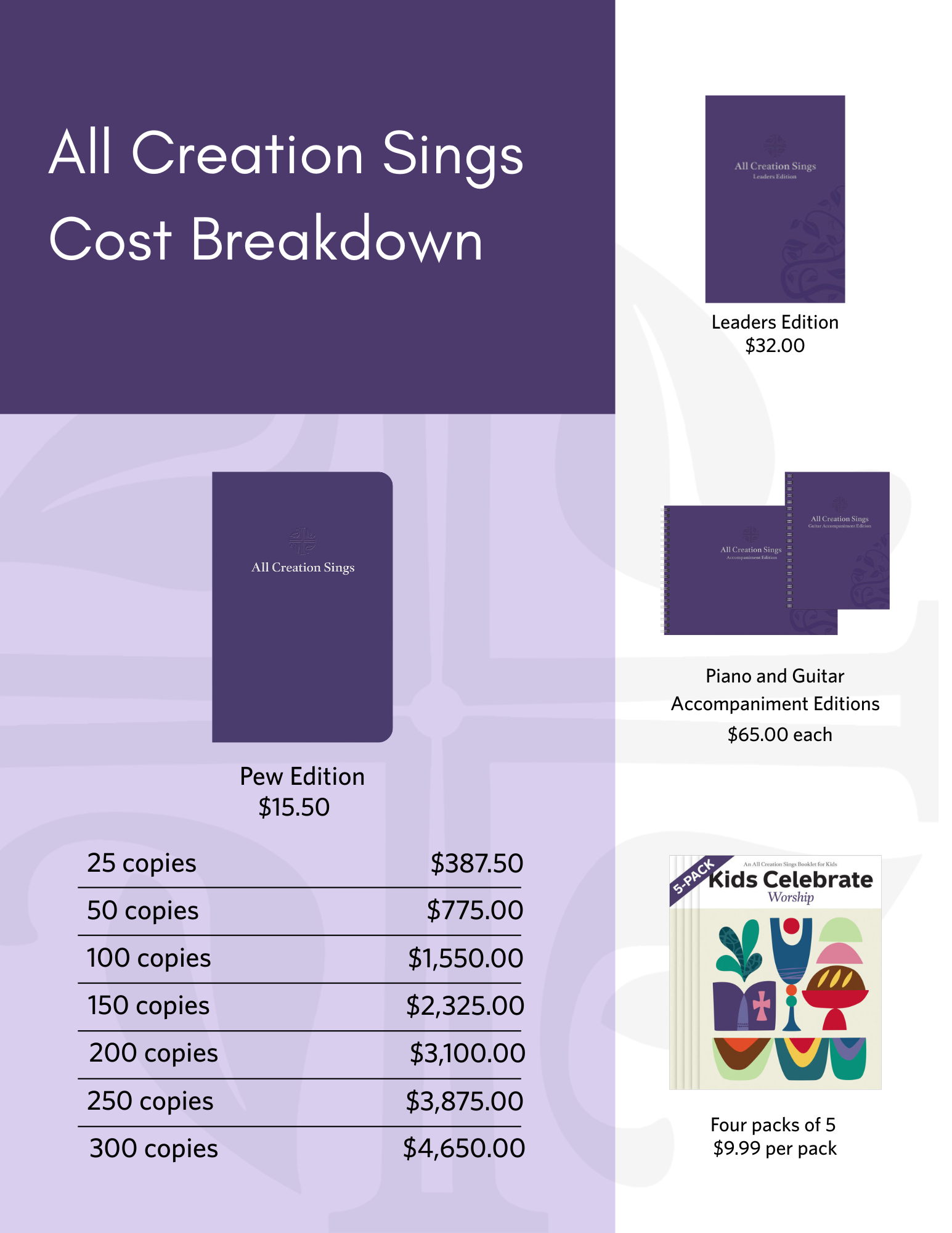 See accompaniment editions, leader guides, kids booklets, multigenerational events, companions, indexes, and more!